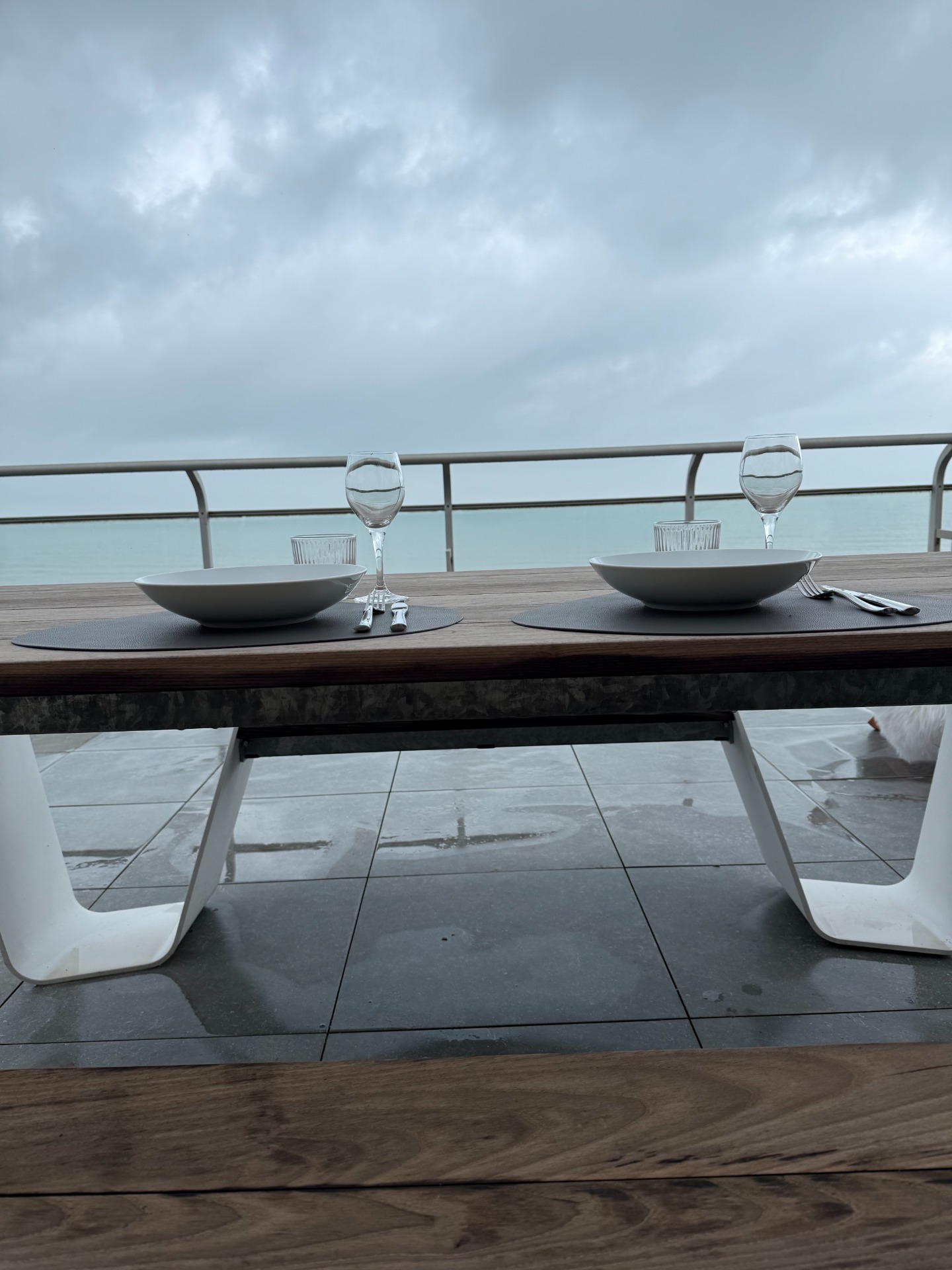 Not only will you enjoy a refined interior, but the outdoor space is also spectacular. A huge terrace right on the sea. Protected from the wind and prying eyes on both the right and left. If the weather is not so good, you can easily move the wooden deckchairs inside, just in front of the window, to relax after a refreshing sauna and enjoy the exclusive view. The white chairs inside are also suitable for outdoor use.
